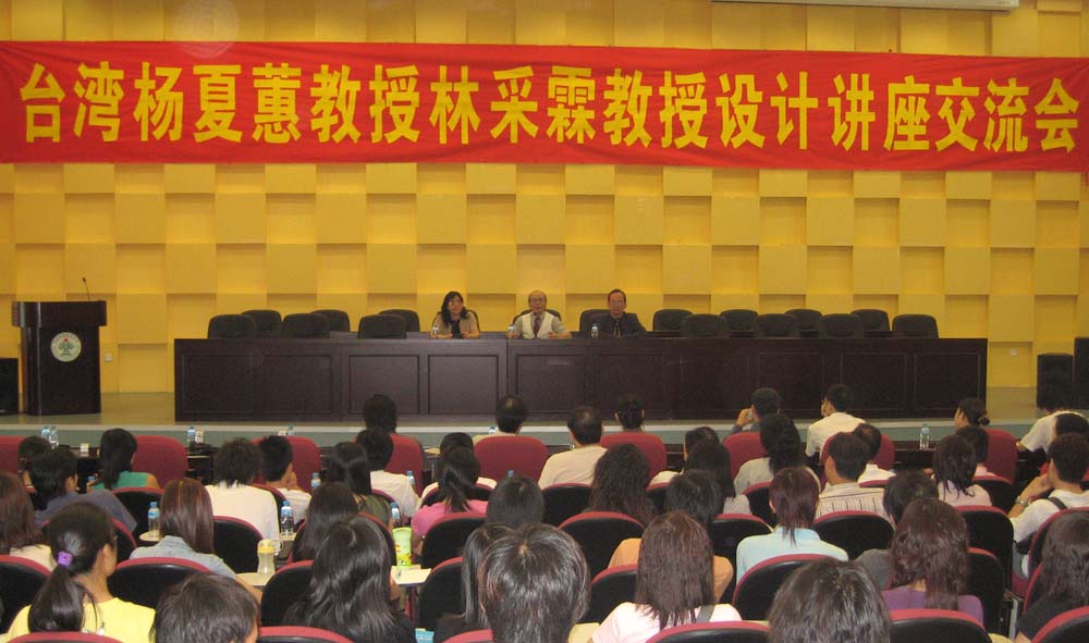 本次讲座,林采霖与杨夏蕙教授围绕文化创意产业、形象营销、自我经营、设计市场开发等方面展开,他们结合自身的经历,用大量的案例并配以图片进行分析讲解。讲学中两位教授还不时与大家进行对话和交流,讲座现场气氛活跃,听众反映热烈,掌声不断,效果甚佳。