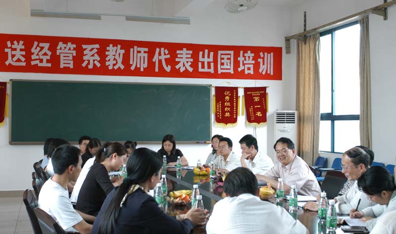 听完两位教师的发言,何锐连副院长说,师资队伍建设是一项非常重要的工作,教师队伍的培训和提高要引起大家的充分重视。此次经管系的两位教师出国培训仅仅是开始,今后还将通过多种途径组织老师去培训,同时他又勉励大家在目前工作任务繁重的情况下,要充分发挥积极性和进取精神,在教学和科研工作中不断地锻炼自我,从而提高自身的专业水平,并希望大家珍惜学习机会,为下次开展培训积累经验。最后,他祝愿即将启程的两位教师:一路平安!