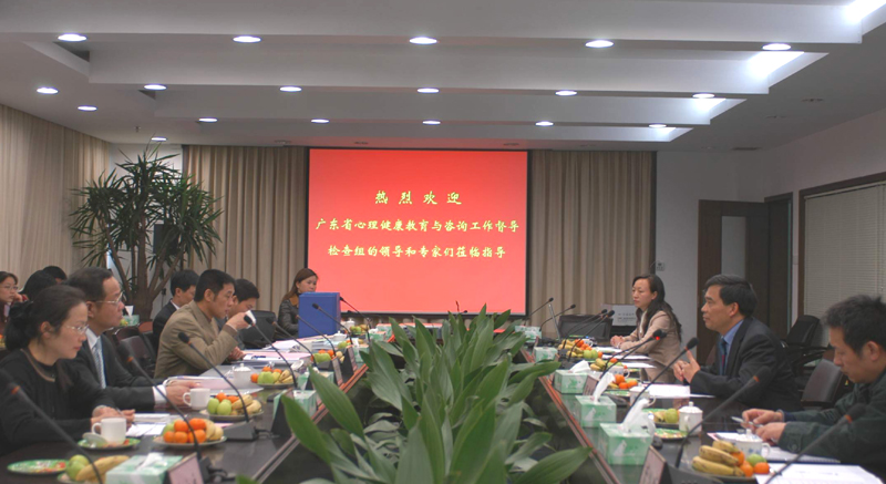 纪委谭谦章书记对学院的基本情况作了介绍后,甘慕仪副处长从组织领导、基本条件、队伍建设、教学工作、宣传普及工作、心理测评与科学研究、工作效果与特色、存在问题与对策等方面对我院心理健康教育与咨询工作作了全面的自评报告。随后,与会专家参观了我院的心理咨询中心和心理健康协会举行的活动,期间并与心理健康协会的同学进行了交谈。