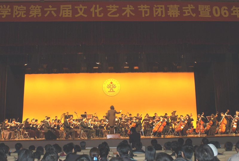 为进一步营造我院高雅艺术文化氛围,以先进文化为引导,促进我院学生的全面和谐发展,闭幕式结束后,我院举行了2006年新年音乐会。音乐会邀请广州珠影乐团演奏了多首世界著名交响乐,使全院师生感受了一次高雅音乐的熏染,受到广大师生的热烈欢迎。