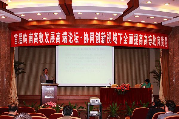 “岭南高教发展高端论坛”由广东省高等教育学会、广东省高等教育学专业委员会主办,本届论坛由佛山科学技术学院承办,其主题是“协同创新视域下全面提高高等教育质量”。本次论坛聚集了中山大学、华南理工大学、华南师范大学、暨南大学和汕头大学等省内高等教育专家学者100多人,其中15位专家学者作了主题报告。