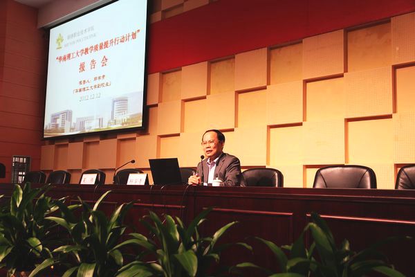 12月12日,华南理工大学副校长邱学青教授应邀到太阳官网作题为“华南理工大学教学质量提升行动计划”的报告。太阳官网领导夏伟、何锐连、陈粟宋、徐刚、谭谦章,全体专任教师和机关教辅部门负责人等参加了报告会。会议由夏伟校长主持。