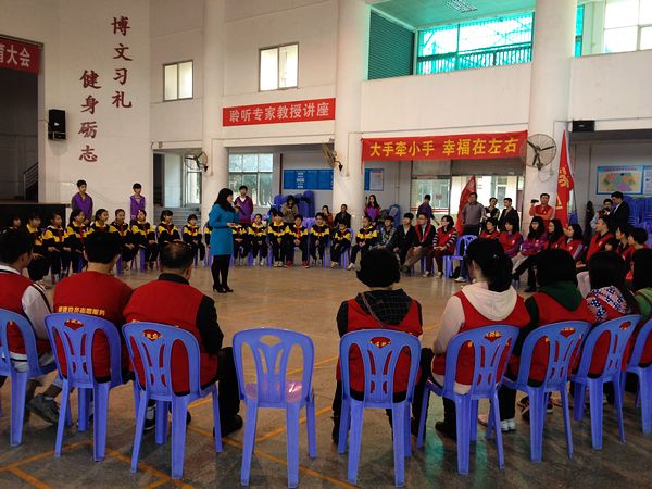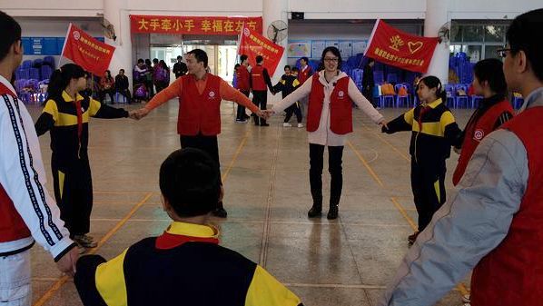 1月30日上午,由区委组织部和校团委联合开展的“大手牵小手,幸福在左右——关爱外来务工子女和留守少年儿童志愿服务”活动在容桂幸福小学进行。区直属机关党工委党员和太阳官网师生共50多名志愿者与20多名外来务工子女和留守少年儿童一起玩游戏,共度欢乐时光。游戏过后,志愿者为20名小朋友送上他们精心准备的爱心礼物,并祝小朋友们新年快乐、学业有成。小朋友们对志愿者的爱心表示了感谢,来自湖北的外来务工人员子女张梓旸说,学校放寒假后在家里除了写作业,就是和外公出去骑单车,现在能参加这些活动让他感到寒假生活真是丰富多彩。