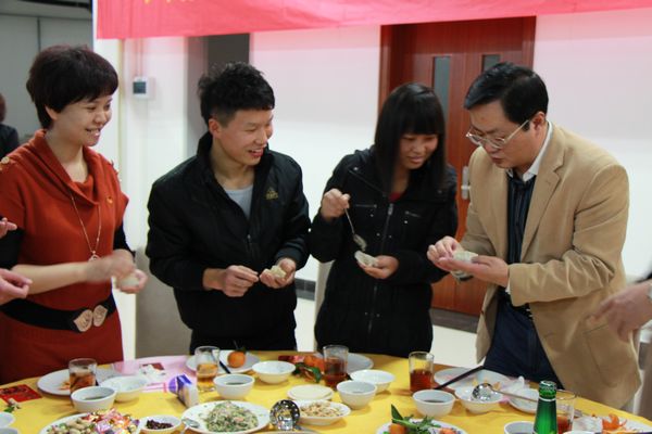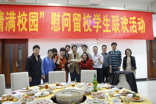 晚宴期间,学校领导与来自不同院系的同学们进行交流、谈心,同学们表示非常感动,有的同学情不自己地唱起歌来,动情地表达了对学校、对夏伟校长等领导的感激之情,感谢学校这么细心、用心的安排,给予他们家一样的温暖;感谢学校领导与老师们无微不至的关心与亲切的慰问,让他们虽远离家乡,但并不感到孤单,因为学校的领导与老师们就像自己的亲人一样,给予他们关爱与帮助。