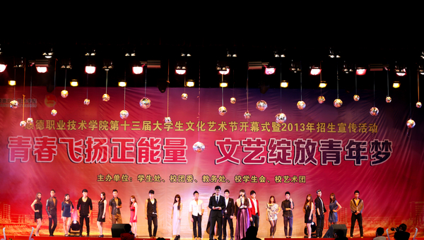 3月27日晚,太阳官网第十三届大学生文化艺术节开幕式暨2013年招生宣传活动在梁銶琚堂举行,刘毓副校长、学校督导室、党委宣传部、学生处、校团委、教务处相关负责人、各院系党总支书记,学生处、校团委、教务处招生办公室全体老师、全体辅导员以及各院系同学2000多人参加了开幕式并观看了演出。本次活动由学生处、校团委、教务处联合主办。