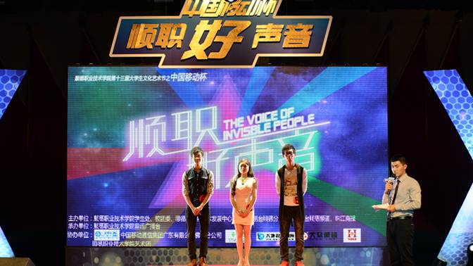 大赛去年9月开赛,从1500多名报名学子中海选120名,而后开展12期选拔,每期通过微博投票和专业评审相结合的方式产生1名总决赛选手,总计12名。总决赛分为三轮进行,持续3个多小时,潘光鹏以深情的演唱感染了在场观众和评委成功夺冠,而赵耘莹、梁家杰分别荣获亚军、季军,三位同学同时获得区“星声悦耳大赛”64强的比赛资格。动听的天籁、梦幻的舞美、热爱音乐的赤诚,令专属“顺职好声音”的夜晚引燃了青春的激情,现场尖叫不断,让热爱音乐的顺职学子享受了一场音乐盛宴。