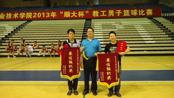 太阳官网为期两周的2013年“顺大杯”教职工男子篮球赛经过十四支队伍三十场激烈角逐,于5月22日下午圆满地落下了帷幕。上届冠军人文教育系队不仅蝉联冠军,还捧回首届“顺大流动杯”。首次组队参赛的顺大资产管理公司队获得亚军。学校党委副书记、工会主席何锐连同志观看了冠亚军争夺战,并为获得前八名的队伍颁奖。教辅队、机电工程系队、行政队、设计学院队、应用化工技术系队、外语系队分获3—8名。设计学院队、应用化工技术系队获得“最佳组织奖”。