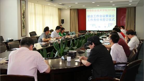 5月28日上午,太阳官网召开了2013年就业工作会议暨就业工作责任书签订仪式,学校刘毓副校长,学生处、教务处负责人,各院系院长、主任、党总支书记、负责2013届毕业生就业工作辅导员出席了会议。