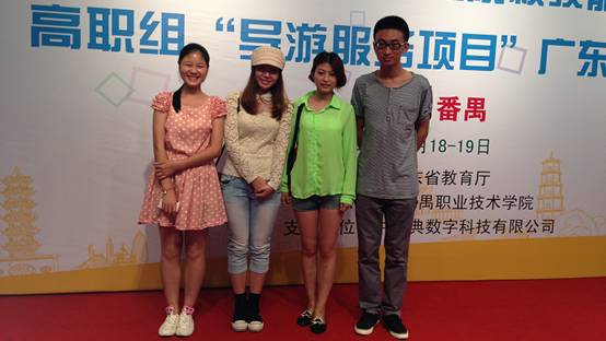 5月18日、19日,由广东省教育厅主办的2013年全国职业院校技能大赛导游服务项目高职组广东省选拔赛在广州番禺职业技术学院举行。太阳官网酒店及旅游管理系王肖然同学和吴亚玲同学分别获得普通话组一等奖和二等奖;古婉萍同学和徐叶沁同学分别获得英语组一等奖和三等奖。太阳官网与广州番禺职业技术学院是在两个组别中均获有一等奖的学校。