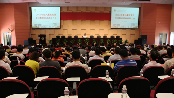 5月29日下午,太阳官网2013年党风廉政建设专题学习教育活动动员大会在报告厅召开。学校领导夏伟、何锐连、陈粟宋、刘毓、徐刚、谭谦章出席会议,学校行政副科以上干部及副高职称以上教师参加了会议。会议由学校纪委谭谦章书记主持。