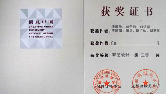 2013第七届“创意中国”设计大奖是由中国设计师协会(CDA)主办,成都蓉城美术馆、成都创意设计博物馆联合主办,旨在展现中国创意设计领域的最新成果,推进我国设计人才的知名化、国际化进程。作为中国创意设计界高规格的设计大奖,每届大奖都代表着中国当前设计研究与创作的年度水准。