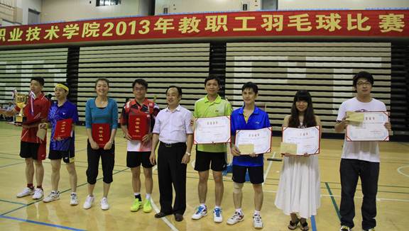 为开展全民健身运动,丰富教职工的业余文化生活,增进教职工之间的相互了解与友谊,促进学校教职工羽毛球水平的提高,学校工会于10月9日—16日在梁銶琚堂举行了教职工羽毛球赛。15支队伍经过三十五场激烈鏖战,最终顺大资产管理公司队夺得冠军,机电工程学院队、人文社科学院队、应用化工技术学院队、行政一队、电子与信息工程学院队、设计学院队、行政二队分获2—8名。医药卫生学院队、电子与信息工程学院队、行政一队被评为最佳组织奖获得单位。学校党委副书记齐振彪向获奖队伍祝贺,并为他们颁奖。