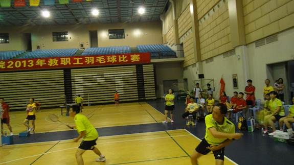 本次羽毛球赛设混合团体赛,共有15支队伍参赛。各工会小组、二级学院工会委员会积极组织队伍加强训练并聘请教练研究战术,认真备战。使比赛精彩程度超过往届,整体水平有所提高。从校领导到刚入校的教师,从才毕业的新丁到五十多岁的老将都披挂上阵,挥拍征战。整个比赛气氛热烈、参与度高。不仅老师积极参与,学生也全情投入。各代表队的啦啦队更是舞花环、敲彩棒、拉标语、喊口号,各施奇招,整个赛场如同嘉年华一般。比赛中“黑马”频出,高潮迭起。
