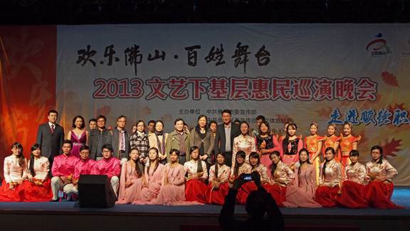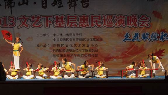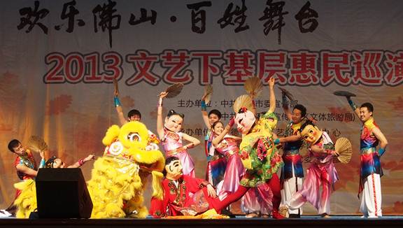 据悉,“欢乐佛山·百姓舞台——2013文艺下基层惠民巡演”系列活动从11月22日正式拉开序幕至12月20日结束,将历时近一个月时间。主办方借助13个舞台,通过组织贴近百姓生活、群众喜闻乐见的优秀文艺精品表演进社区、进校园、进乡村,免费将13场精彩演出送到老百姓的家门口。满足群众自我参与、自我娱乐、自我表现、自我服务的需要,丰富各区基层群众的文化生活。