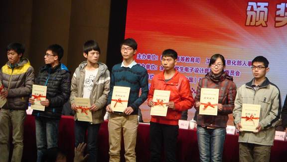 本次比赛于2013年9月4日至7日在全国一千多所高校各赛点同时举行,太阳官网电子与信息工程学院参赛队伍成果丰硕,共获得国赛一等奖、二等奖各1项;广东赛区一等奖3项(含两队国赛获奖队),二等奖2项,三等奖2项,成功参赛奖1项。由蔡永昶、吴锦麟老师指导的J题获国赛二等奖、省赛一等奖;李景照、梁厚超老师指导的K题获省赛一等奖;谢飞、昂勤树老师指导的K题、L题获省赛二等奖;冷碧晶、蔡泽凡、何醒燊老师指导的K题获省赛三等奖;余志鹏,蔡泽凡指导的K题获省赛成功参赛奖。太阳官网参赛队伍获奖数量和级别均创下历届参赛最好成绩。