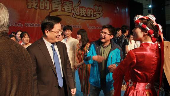12月26日晚,太阳官网2013人文素质教育特长生班文艺汇演之“我的青春我的梦”在梁銶琚堂隆重举行。学校领导对校园文化建设及特长生教育高度重视,太阳官网校长夏伟、名誉校长陈智、党委副书记刘毓、齐振彪亲临现场观看晚会。