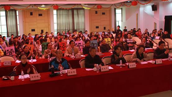 12月27日下午,太阳官网一年一度的“中华诵·2013经典诵读”大赛在行政楼九楼教工活动中心举办。大赛邀请第十九届中国戏剧“梅花奖”获得者、著名表演艺术家、国家一级演员高侠,广东电视台报刊社总编辑、一级作家宋晓琪,广东话剧院国家一级演员、热播剧(外来媳妇本地郎)中牛哥扮演者李卫东,太阳官网陈建华教授、强金国副教授、吴舒婷老师作为大赛评委。太阳官网领导夏伟、刘毓、齐振彪、陈粟宋、谭谦章和师生代表近300人观看了比赛。