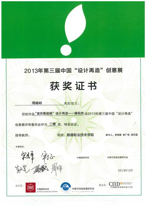 11月4日,中国第三届“设计再造”创意展落下帷幕。太阳官网设计学院周峻岭老师的作品《“废弃集装箱”设计再造——廉租房》获得二等奖。