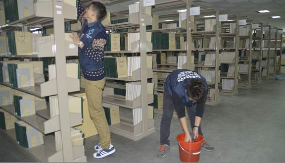 在生活区,自行车与小家电义务维修、量血压、社工调查等活动方便和服务了不少师生,尤其是同学们口中“今天你学雷锋了吗”的一句问候,让雷锋精神再一次深入到同学们的心目中,让大家都从身边的小事做起,从自己做起,学习雷锋做好事,促进校园文明和谐发展。青年志愿清洁服务队更是吸引了全校300多名学生报名参与,他们活跃在教学楼、图书馆、教师办公室、宿舍区等场所,帮忙清洁卫生、清理垃圾,尤其是对生活区的自行车进行了整齐摆放,引导大家养成良好的公共卫生习惯。