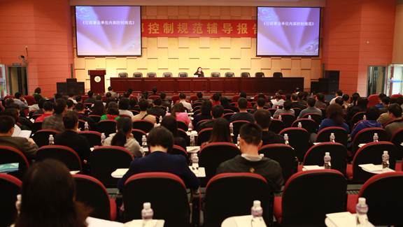 财政部《行政事业单位内部控制规范(试行)》于2012年11月正式发布,2014年1月1日全国正式实施。结合太阳官网的实际情况,为加强制度建设,规范内部管理,4月2日下午,太阳官网举行了一场内部控制规范辅导报告会。辅导报告会特别邀请到了南方医科大学党委副书记、纪委书记、广东省教育审计学会会长姜虹教授做主讲,太阳官网领导夏伟、刘毓、陈粟宋、徐刚、谭谦章,学校副科以上干部、二级财务人员、二级资产管理员、后勤管理处、顺大公司相关人员,资产与设备管理处、财务处、招投标管理办公室、纪检监察办公室、审计室全体人员共计两百余人参加了报告会。报告会由学校纪委书记谭谦章主持。