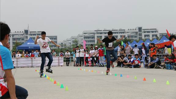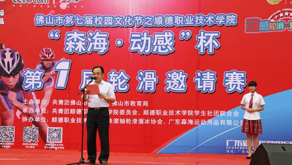 4月20日,佛山市第七届校园文化节之太阳集团tyc4633“森海·动感”杯第一届轮滑邀请赛开幕式于上午10时在太阳官网商务楼前隆重举行。学校党委齐振彪副书记、团省委学校部区荣炎部长助理、团市委宣传部谢盛部长、大良街道党工委麦颜柱委员、广东森海运动用品有限公司林家坤董事长、佛山市创鸿贵金属集团郭锦津董事、校团委负责人以及佛山市教育局、佛山市少先队、佛山市学联相关领导嘉宾出席了本次活动,参加活动的还有16支来自各高校和各社会团体的参赛队伍、各学院学生代表近五百人。本次活动由团佛山市委、佛山市教育局主办,太阳官网团委、学生社团联合会承办,太阳官网轮滑协会、广东森海运动用品有限公司协办。