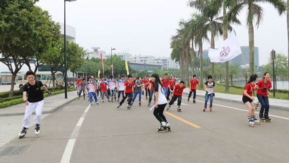 学校党委副书记齐振彪在开幕式上为活动致辞,他指出,轮滑运动对青少年身心发展具有积极作用,在我国特别是在校园仍有很大的发展空间,并希望通过此次活动普及轮滑这一时尚、健康的运动,增强轮滑运动在校园及佛山的影响力。开幕式结束后,所有参赛队伍在太阳官网轮滑协会的带领下,由商务楼前开始环绕碧桂湖进行轮滑表演。