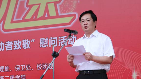 4月29日下午,在“五一”国际劳动节到来之际,学校开展了主题为“向劳动者致敬”的职工慰问暨师生义务劳动活动,夏伟校长、齐振彪副书记、陈粟宋副院长、谭谦章纪委书记等学校领导向广大教职员工、后勤管理工作人员表达了亲切的问候与衷心的感谢。学校办公室、党委宣传部、后勤管理处、校团委、鼎瀛物业管理公司等部门负责人,各二级学院党总支书记、辅导员以及后勤管理队伍180多名工友、400多名学生代表参加了活动。活动由学生工作部负责人主持。