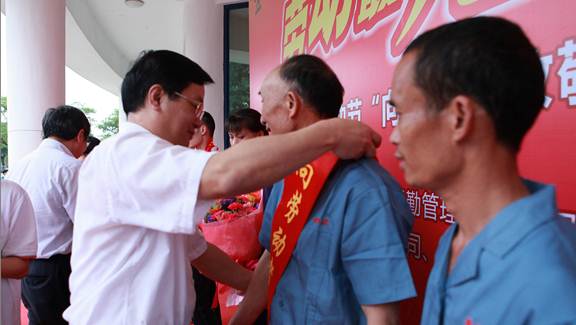劳动最光荣、最崇高、最伟大、最美丽,为了表达学校对广大后勤管理工作人员敬意与感谢,学校领导夏伟校长、齐振彪副书记、陈粟宋副院长、谭谦章纪委书记为劳动者代表亲自授绶带,献上鲜花。同时,同学们为表达对叔叔阿姨们的感谢,纷纷给在场的180多名后勤管理工作人员送上毛巾与亲手制作的慰问卡片,礼轻情义重,表达的正是学生们最真的情感。