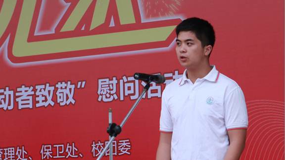 夏伟校长在活动讲话中首先代表学校党政向辛勤工作在学校各个岗位的全体教职工、后勤管理人员表示衷心的感谢和亲切的问候。他指出学校在过去15年的发展历程中,正是有广大教职员工的共同努力,才有“全国职业教育先进单位”、“广东省高技能人才培养先进单位”等优异成绩;正是有一群默默无闻工作在师生背后的清洁阿姨、保安兄弟、食堂工友等的无私奉献,才有师生们安心工作与快乐生活在美丽的校园里。最后,夏伟校长寄语广大学生要用实干托举梦想,从现在做起、从身边事情做起,爱学习、爱劳动,珍惜劳动成果,学会感恩,学会担责,在劳动中成长,为社会经济发展作出贡献。