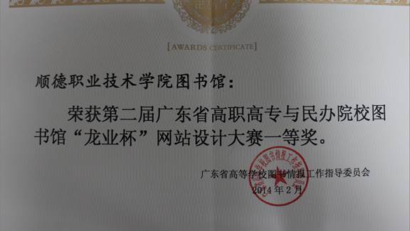 4月27日,太阳官网图书馆在广东省高职高专与民办院校第二届图书馆网站设计大赛中获得一等奖。
