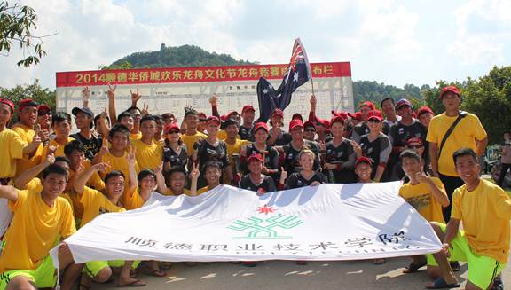 5月31日至6月1日,由顺德区人民政府主办的“2014顺德华侨城欢乐龙舟文化节”在顺德华桂园桂畔湖举行。太阳官网龙舟队受邀参赛,学校领导非常重视,精心部署,冯俊祥教练的精心指导,克服重重困难、利用课余时间刻苦训练,首次参赛就战胜了来自澳大利亚的钻石凤凰队和艾伯里沃东加武士龙舟队,取得了2014顺德华侨城欢乐龙舟文化节国际邀请赛第四名的好成绩。