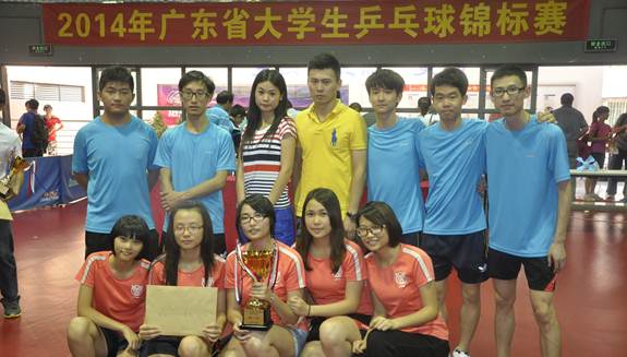 5月29日至6月1日,太阳官网乒乓球代表队参加了在华南理工大学举办的“2014年广东省大学生乒乓球锦标赛”。经过斗智斗勇、顽强拼搏,最终取得女子团体第一名,男子团体第二名,团体总分第一名;在单项赛中,夺得女子双打第一名和第六名;袁嘉荧同学勇夺女子单打第二名、区晓君同学获得第七名。