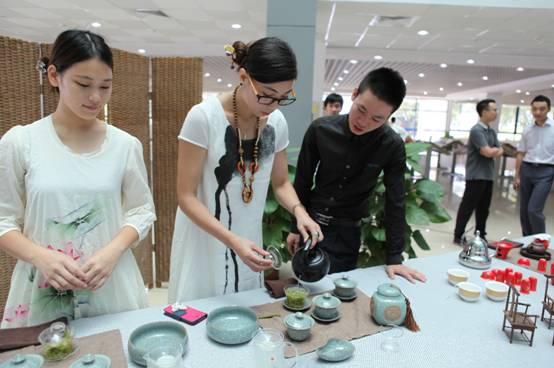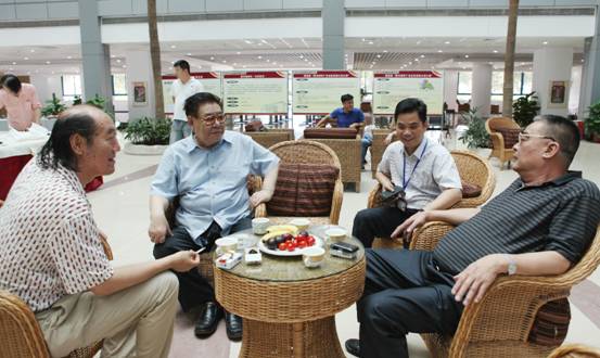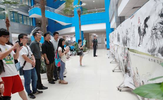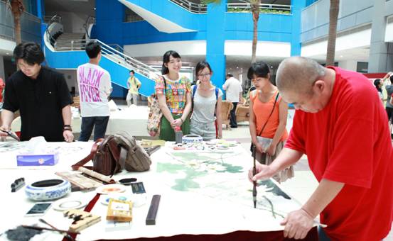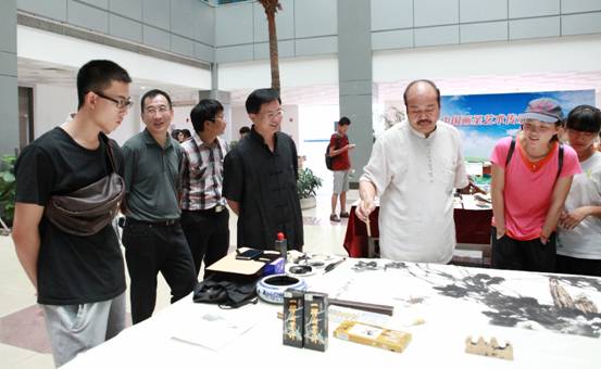 7月3日,“中国画圣艺术传承团走进顺德” 活动在太阳官网图书馆隆重举行。艺术传承团的著名画家当场泼墨作画,吸引了众多师生前来欣赏。太阳官网校长夏伟,党委副书记、副校长刘毓等学校领导及师生在现场与画家积极互动,学校茶艺社现场表演赢得了大家阵阵掌声。