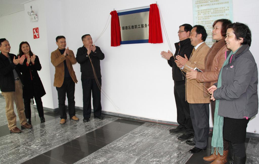 随后,在太阳官网教工活动中心,霍兆忠、丁庚山、陈万铨、何小莹、何宝英、劳国明、齐振彪等领导为“顺德区教职工服务中心”挂牌揭幕,区总工会和教育工会对太阳官网工会全心全意为教职工服务、常年开展丰富的文体活动等工作给予了表彰,他们表示,将该服务中心设在太阳官网,目的是借助于学校的丰富资源,更好地为全区教育系统教职工举办各类丰富的文体活动,为推动顺德区的教育事业多做贡献。