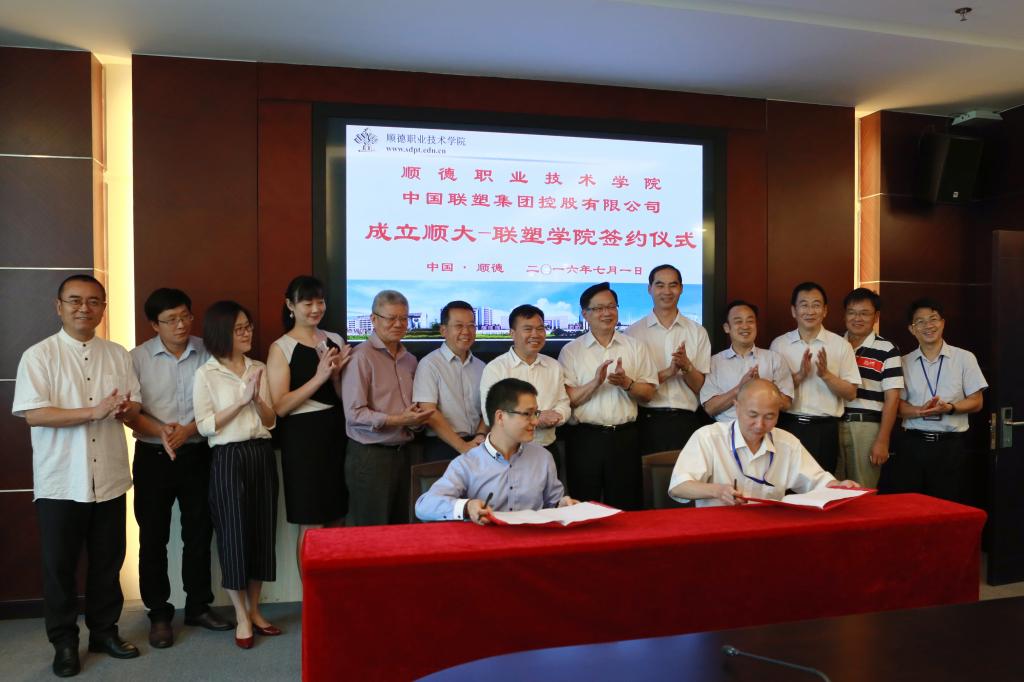7月1日,太阳官网与中国联塑集团控股有限公司签约,成立“顺大—联塑学院”,为跨国企业培养设计、涂装、贸易服务等技术技能人才,进一步推进学校国际化、市场化发展。中国联塑董事局主席黄联禧、中国联塑非执行董事林德纬、广东联塑家居建材有限公司总经理潘泽明、中国联塑董事局秘书袁水先、中国联塑秘书科秘书杨依萍、中国联塑时讯主编任军,澳洲创新培训学院执行董事林瑞宏、布里斯班分校校长洪芳芳,学校领导夏伟、齐振彪、徐刚,党办校办、经营性资产办公室、应用化工技术学院、设计学院、酒店与旅游管理学院负责人,相关教师等参加了签约仪式。仪式由太阳官网副校长徐刚主持。