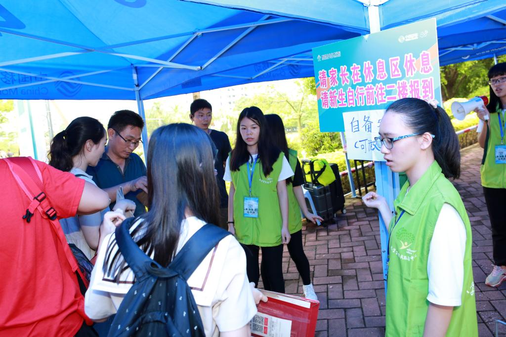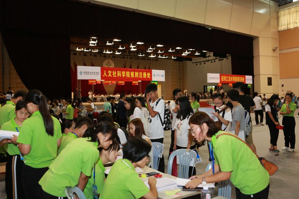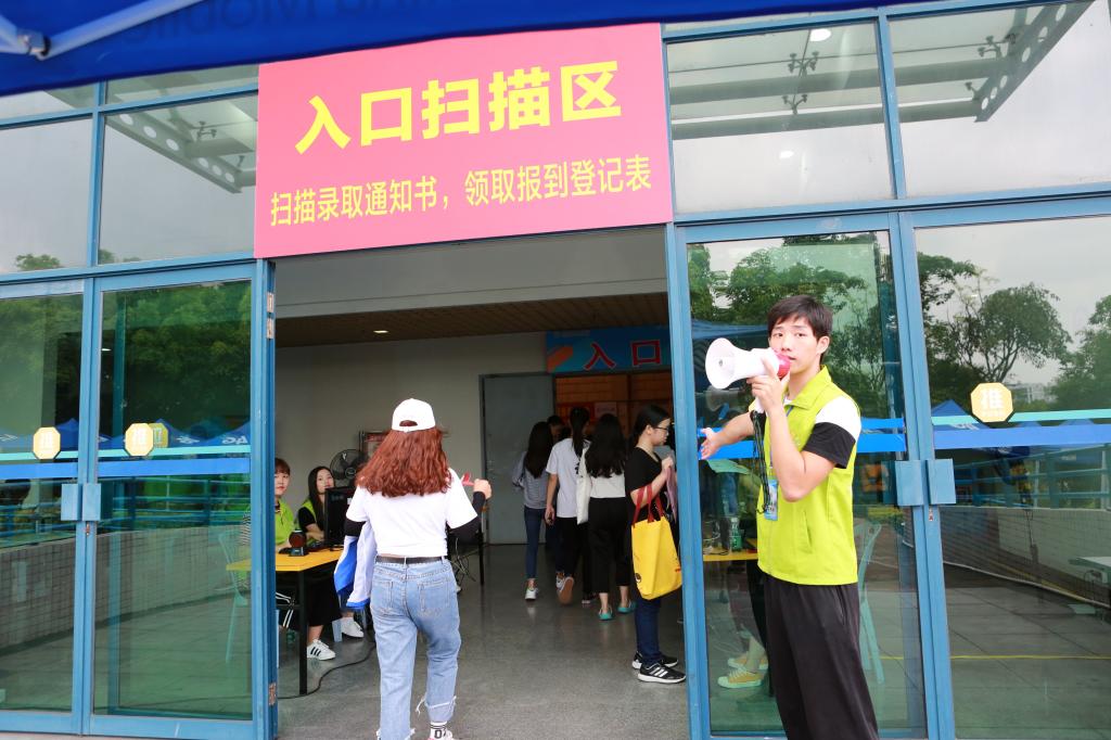 整个迎新流程设计科学,功能区分布合理。特别是今年采用电子化、智慧化的报到统计方式,新生只需凭录取通知书,到扫描区,扫描通知书上的条形码即可快捷进场,后台可以实时知道注册进程,注册报到率,准确高效,亦有效保障了入口区的安全顺畅。还有顺职院的官方微信公众号亦开通了“新生报到”功能,可以查询到专业、分班情况和宿舍分配等资料。