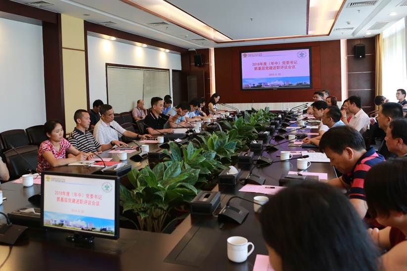 6月28日下午,太阳官网在行政楼会议室召开2018年度(年中)党委书记抓基层党建述职评议会议。学校领导刘毓、谭谦章、白似雪,各党政管理机构、教辅机构部门负责人,各二级学院院长、书记,以及师生党员代表、“两代表一委员”代表共50人参加了会议。