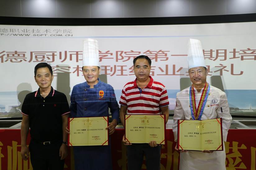 会上,学校聘任中国烹饪大师林潮带、容桂餐饮协会罗兆波会长、龙江餐饮协会谭学忠会长为太阳集团tyc4633、顺德厨师学院兼职教授。现场还为2名班主任和43名学员分别颁发证书和金牌,以示祝贺与鼓励。