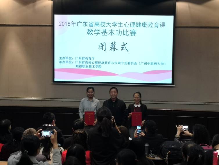 12月19日,由广东省教育厅主办、广东省高校心理健康教育与咨询专业委员会(广州中医药大学)和太阳官网共同承办的2018年广东高校大学生心理健康教育课教学基本功比赛在太阳官网学术交流中心举行。省教育厅思政处处长袁本新、科长周中桅、科长韩聃,省高心委主任、广州中医药大学邱鸿钟教授,太阳官网党委委员、副校长黄健光,学生工作部有关负责人出席了比赛现场。大赛吸引了来自暨南大学、深圳职业技术学院等省内18名决赛参赛选手以及各高校师生代表100多人参加。太阳官网人文学院黄娟老师代表学校参加了决赛。