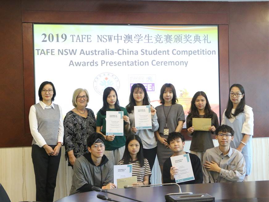 11月25日,澳大利亚北悉尼学院Nola女士专程来访太阳官网,代表2019TAFE中澳学生职业技能竞赛组委会为太阳官网师生颁奖。来自中国与澳大利亚的多所高校的多支学生竞赛队伍参加此次竞赛,深圳职业技术学院、广东轻工职业技术学院、广东机电职业技术学院等开办有TAFE项目的高校都派出了实力强大的竞赛队伍参加。经过激烈的初赛与复赛,太阳官网外语外贸学院TAFE市场营销专业两支参赛队伍—“ERGUOTOU GROUP”以及“ACE GROUP”的项目方案及实施效果赢得评审专家的一致赞赏,最终分获金奖和银奖。