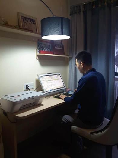 图1:林琼立老师正在编辑“商学院2020 ~战疫点滴”并统计宣传稿。
