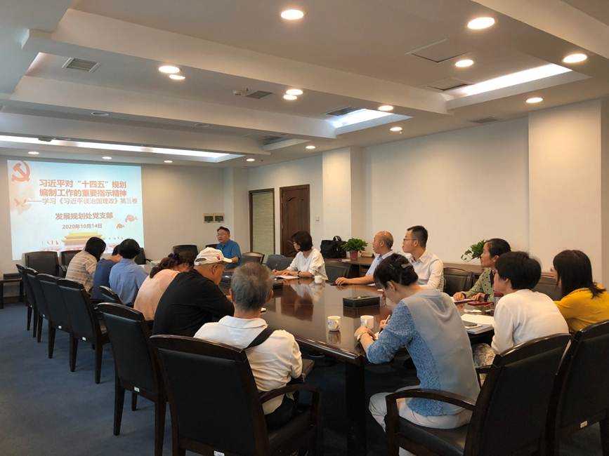 10月14日下午,发展规划处党支部在行政楼506会议室召开全体人员会议,组织学习“习近平对'十四五'规划编制工作的重要指示精神”和《职业教育提质培优行动计划(2020-2023)》(以下简称“行动计划”)。党支部书记肖坤主持学习会。