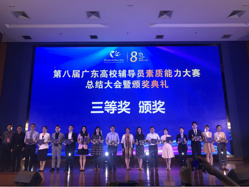 10月31日,由广东省教育厅主办,教育部高校思想政治工作队伍培训研修中心(华南师范大学)、教育部高校辅导员培训和研修基地(华南师范大学)、广东轻工职业技术学院承办的第八届广东高校辅导员素质能力大赛现场赛成功举行。经过激烈角逐,太阳官网人文学院辅导员崔赫凝老师荣获三等奖。