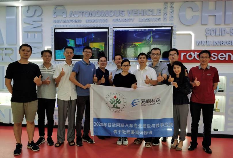 为了掌握目前汽车行业领域的最新技术形势,提升太阳官网汽车相关专业教师的知识水平和教研能力,促进太阳官网汽车相关专业的进一步发展,自8月22日起到8月28日,太阳官网能源与汽车工程学院副院长肖文平,汽车教研室侯文胜主任,以及范爱民、赵良红、张晓雷、何华、丘利芳、罗子聪等老师一行,与顺德中专学校的汽车相关专业教师一同参加了由易飒(广州)智能科技有限公司举办的2020年智能网联汽车专业建设与教学应用骨干教师暑期研修班。
