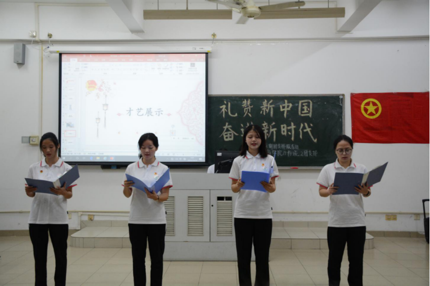 此外,支部成员还准备了一系列才艺表演,例如,舞蹈串烧《醉》、歌曲串烧《律动》、模特走秀《国潮》及歌曲朗诵《祖国万岁》。丰富多彩的节目让大家目不暇接,现成氛围活跃。