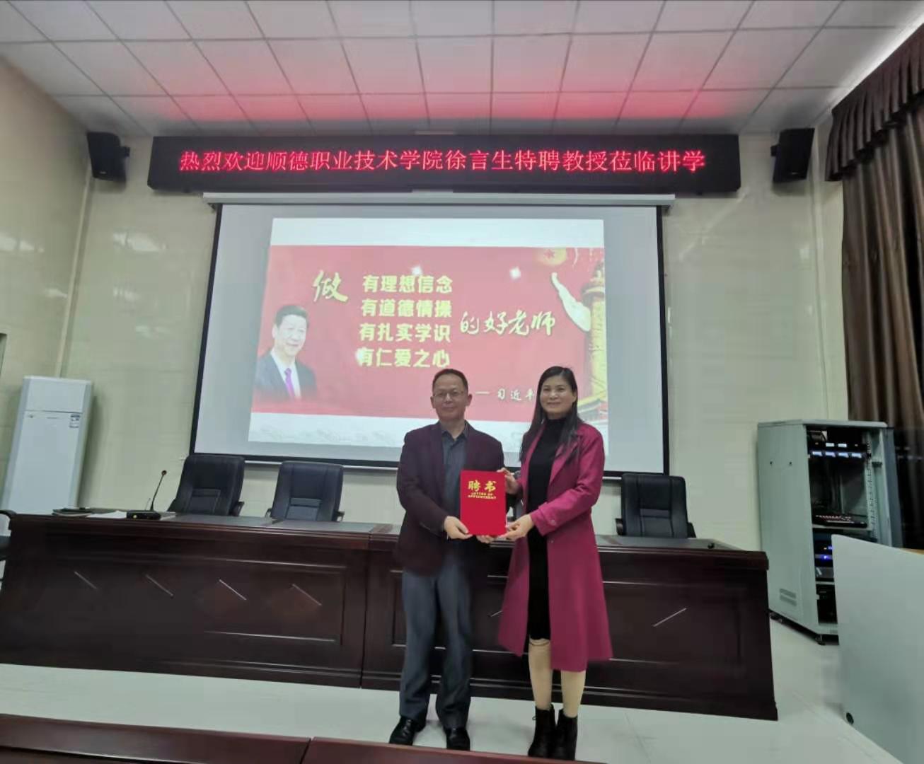 12月9日下午,徐言生教授及团队一行5人来到罗定职院。罗定职院对太阳官网组织的此次送教上门活动给予了高度重视,副院长莫秋蝉、人事处处长陈银芳等领导对太阳官网教师团队一行表示热烈欢迎。随后的座谈会上,为进一步加强校际学习交流,罗定职院聘请徐言生教授为特聘教授,同时,徐言生教授名师工作室招收罗定职院两名网络工作室学员,建立常态化研修培养。