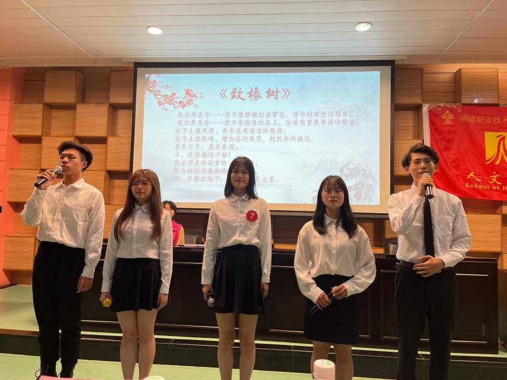 经过激烈角逐,共评出一等奖两名,二等奖四名,三等奖七名。最终,来自20传策2班的周彤彤、20旅管2班的林欣选手凭借《木兰诗》诵唱节目与来自20传策1班的梁碧秀选手凭借《我爱这土地》朗诵节目荣获本次大赛的一等奖.比赛结束后,老师对选手们进行了精彩的点评,赢得了现场师生的热烈掌声。