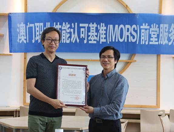 澳门职业技能认可基准(Macao Occupational Skills Recognition System- MORS)﹝以下简称MORS﹞是一项由澳门旅游学院于2001年在欧盟专家协助下开发的职业技能认证制度,其主要目的是透过引入一系列工种的认可制度,提升澳门旅游业人力资源的质素。据介绍,此次培训的具体授课内容为前堂服务员培训,由澳门旅游学院资深职业技能认可基准及酒店课程主任麦锡光先生进行授课,课程涉及初阶专业人员及督导师的两大职业技能等级,采用“澳门职业技能认可基准(MORS)”作为培训及评核体系,兼具理论培训和实训。