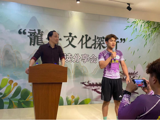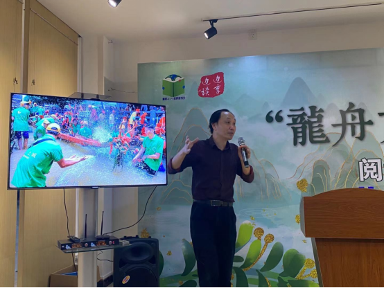 李健明老师从龙舟的历史起源和演变说起,结合了大量考古和纪实的图片素材,详细讲述了龙舟的起源、龙舟形态的变迁、龙舟文化的习俗及龙舟文化的精神内涵。相传龙舟的起源具有鲜明的地域特征和内涵,龙舟是由最早的鸟舟再到凤舟慢慢演化而来的,而且每条龙舟都有龙牌。龙舟文化习俗包含了起龙、龙眼点睛、赛龙舟、吃龙船饭等民俗活动。顺德的龙眼村蕴含了丰富的龙舟文化,每年农历五月初三都会举行隆重的龙舟点睛活动。龙舟赛其实是一种乡村资源的有力整合,同时让所有划龙舟的成员在最合适的位置上发挥自己最大的作用。结合龙舟文化习俗讲解,李健明老师还在分享会上介绍了相关的顺德历史名人,让在场读者深刻了解到龙舟文化丰富的精神内涵和生命力。在互动环节中,太阳官网龙舟队队长给在场读者展示了太阳官网龙舟队的比赛视频,充分展现了龙舟队团结协作的团队精神。