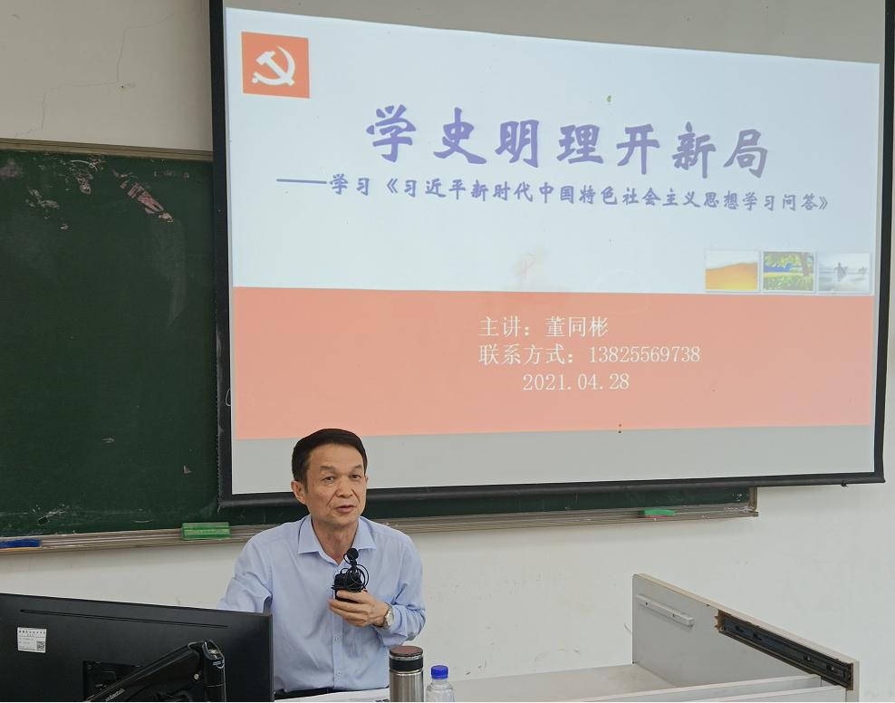 为深入学习贯彻习近平在党史学习教育动员大会上的重要讲话精神,引导广大干部职工做到学史明理、学史增信、学史崇德、学史力行,4月28日,人文学院、商学院共同邀请马克思主义学院董同彬教授作题为“党史明理开新局-学习习近平新时代中国特色社会主义思想学习问答”党史学习专题报告。商学院、人文学院全体教师参加本次学习,会议由商学院党总支书记刘红、人文学院党总支书记李玉春共同主持。